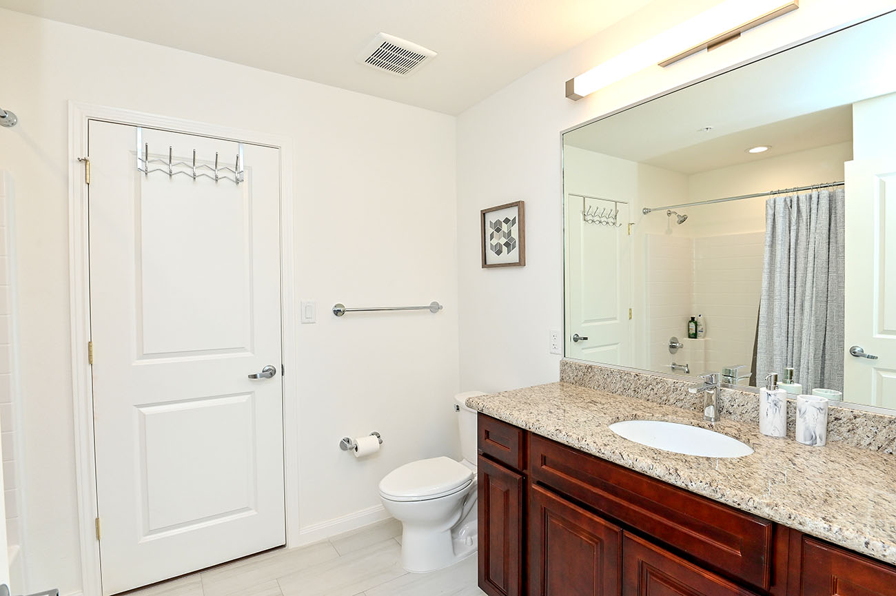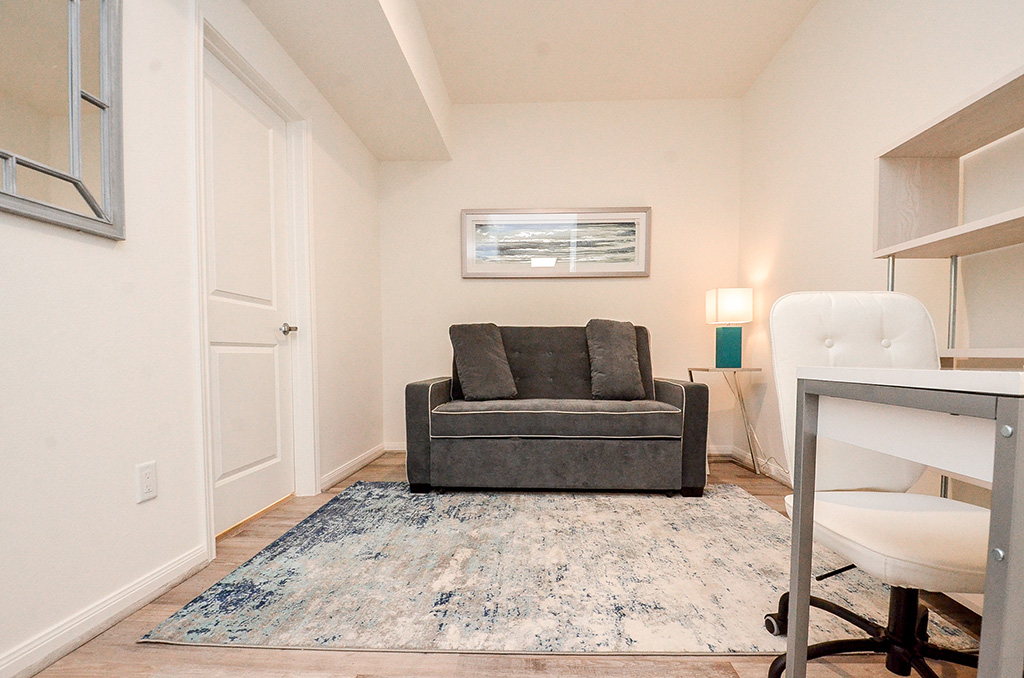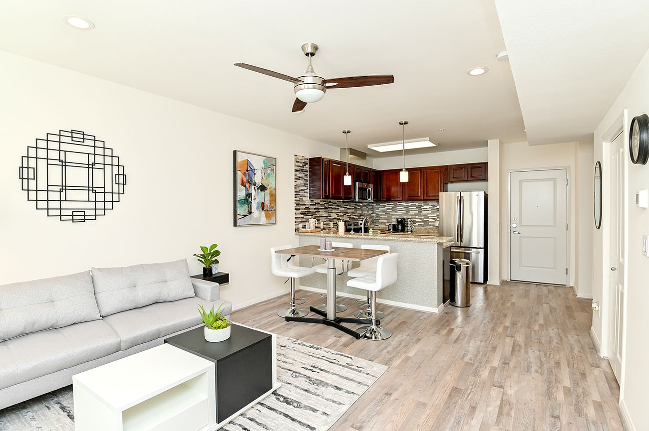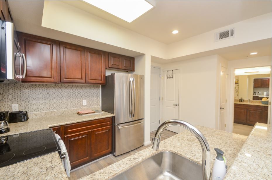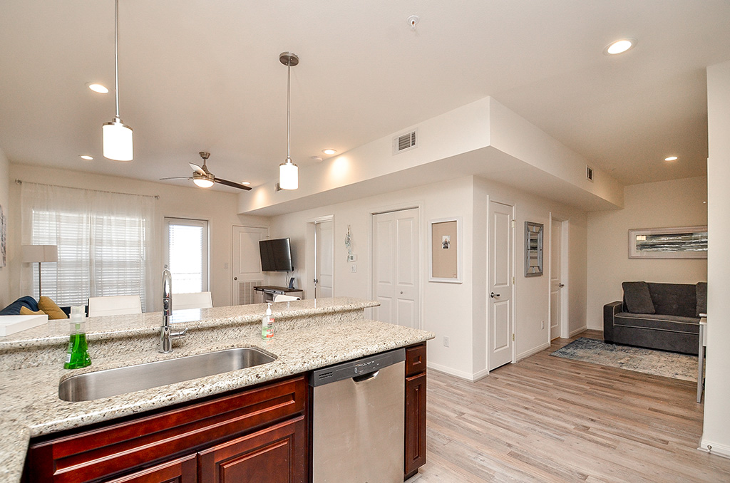Enjoy a pleasant living environment with welcoming murals at the entrance and unique accent designs on each floor. Our short-term apartment rentals feature fully equipped gourmet kitchens with stainless steel appliances, granite countertops, breakfast bars, spacious bedrooms, and in-unit washers and dryers for your convenience.